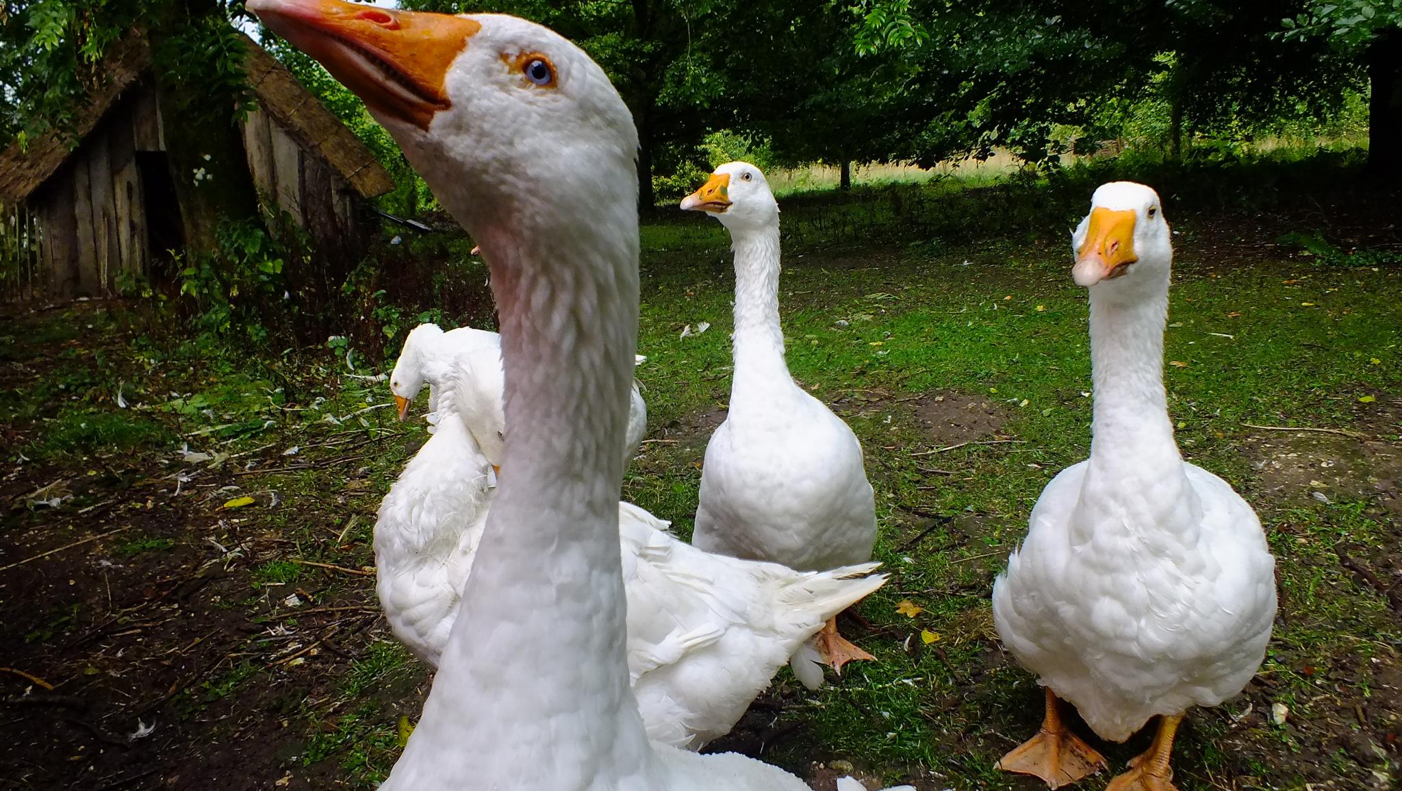 2013-09-08 we had a family outing to the Weald and Downland living museum, Sussex, England. In addition to being a very interesting place to take a camera, it is also home to a gaggle of particularly photogenic white Embden geese (bottom of page 2 and top of page 3 in the gallery below).