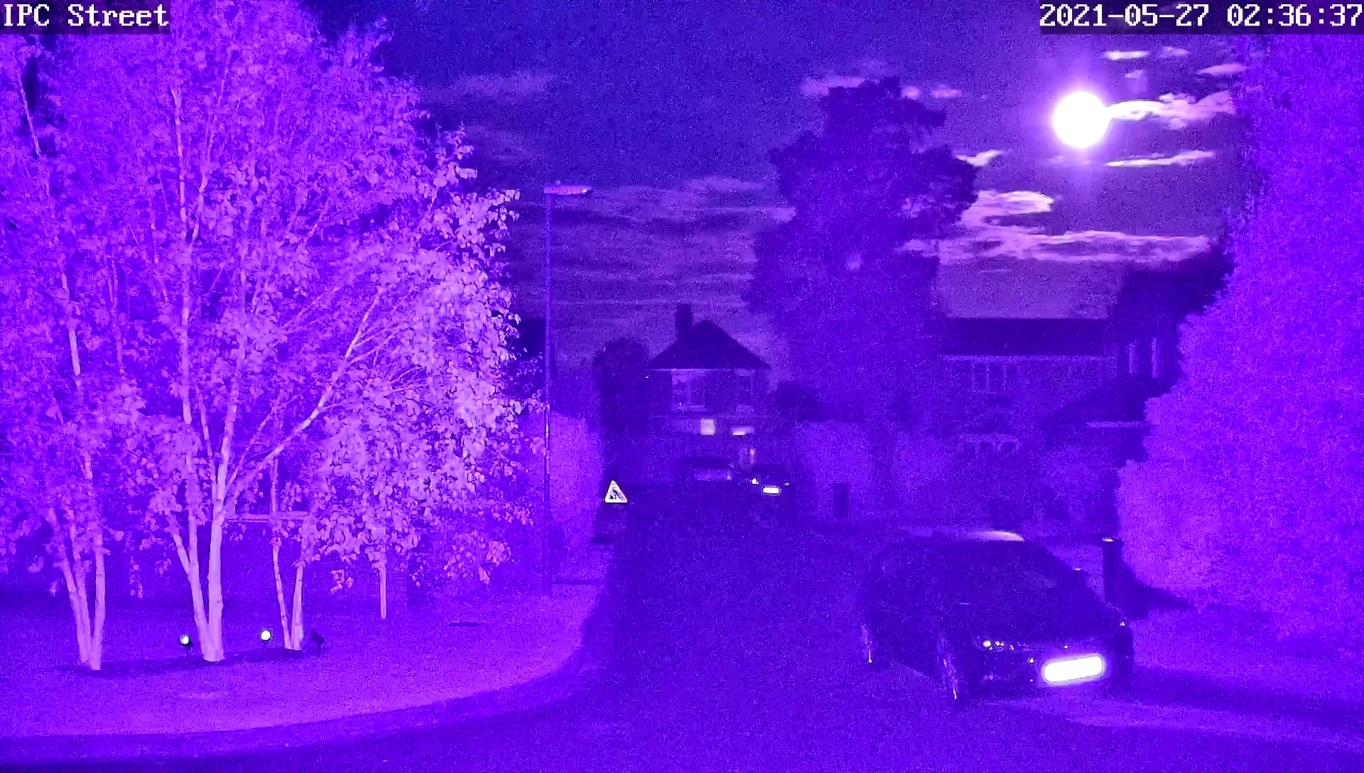 Finally, another screen capture from the IR camera overlooking our back yard, with the camera facing north east, snapped as the near-full moon struggled its way through the gathering storm-clouds…